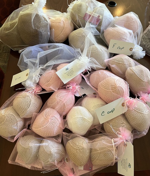 Packaging 21 hats, and 21 pairs of knitted knockers for Chemo and Mastectomy Patients at Swedish Cancer Institute in Issaquah.